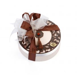 Ahşap Desenli Kadife ve Deri Kutu Çikolata (Yuvarlak-Krem)