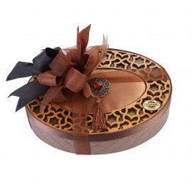 Ahşap Desenli Kadife ve Deri Kutu Çikolata (Oval-Kahverengi)